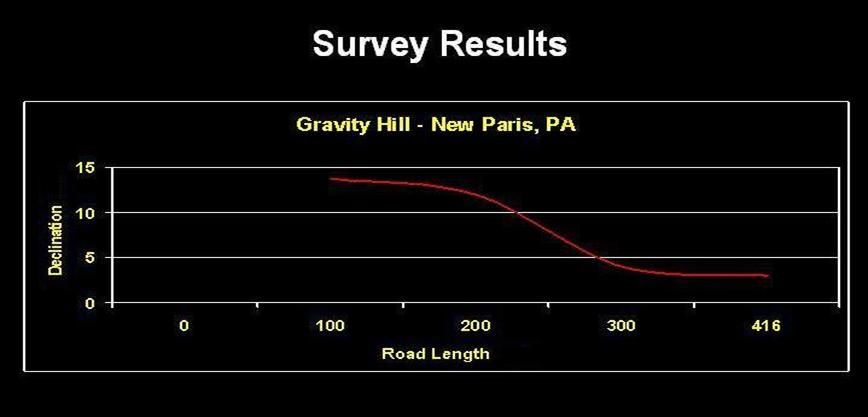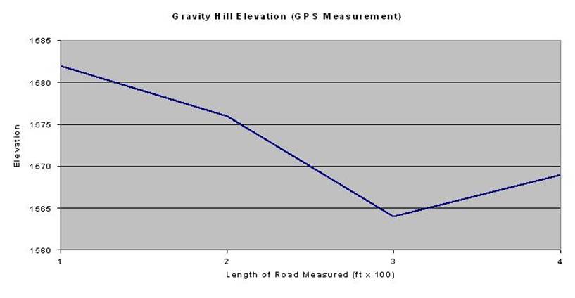 measured on Gravity Hill Road from the “start” position, clearly show a drop in