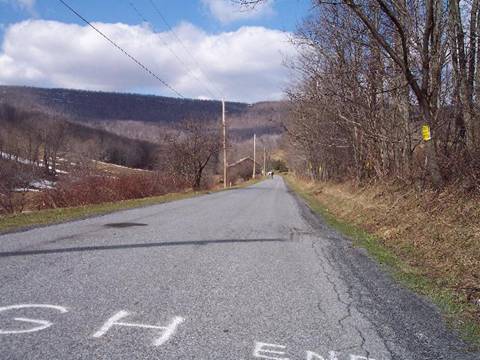 Hill Road (T 539) (watch for white “start” & “end” markers on road)(see