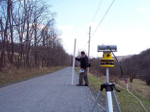 7- Mike Frizzell holds Graduated board for Laser Measurement