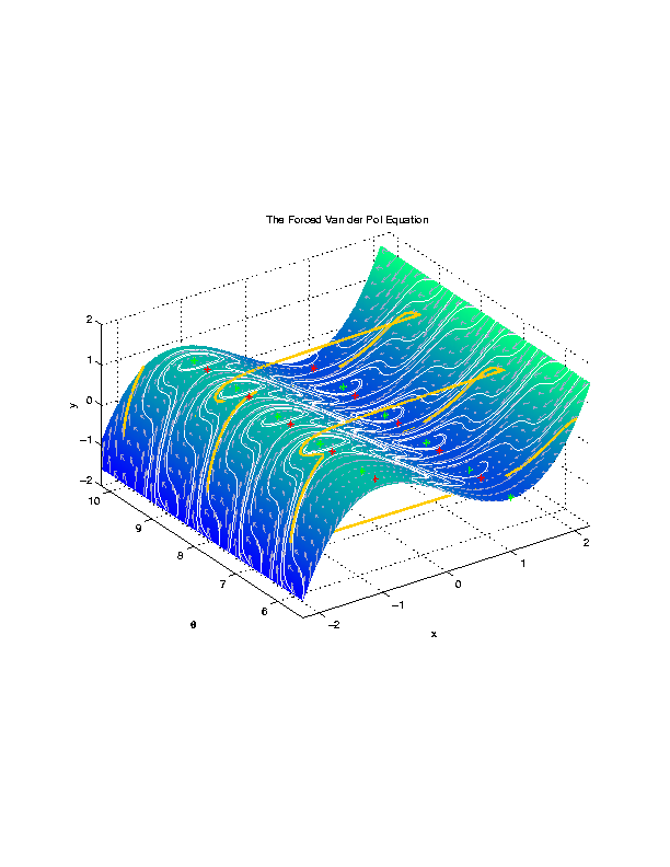 Bifurcation theory for systems with multiple timescales The field of singular perturbation theory has a long and venerable history in applied mathematics with its roots in the classical theory of asymptotic expansions and averaging. Recently, there has been an explosion of interest in geometric singular perturbation theory as a means of combining geometric analysis and dynamical systems theory to provide fresh insight into problems with multiple timescales (e.g. timescales differing by orders of magnitude). For this we developed a global bifurcation theory that describes the fundamental structure of the solution space. My work in singular perturbation theory was motivated by models arising in neurobiology. Models such as the well-known Hodgkin-Huxley model predict how chemical processes occurring on different timescales affect the voltage difference across the membrane of an axon of a neuron. In particular, simple models of the action potential of neurons connected by reciprocally inhibited synapses have been studied to further understand such biological phenomena as heartbeat, swimming, and feeding. Two identical oscillatory neurons connected by reciprocally inhibitory synapses will oscillate exactly out of phase of each other, that is, while one neuron is active the other is quiescent. Our goal is to use singular perturbation theory to understand solutions of a set of four singularly perturbed differential equations which model two asymmetric oscillators. As we investigated the solution space of the asymmetric problem, we found many solutions that were qualitatively similar to the solutions of the symmetric system. We also found other very different types of behavior. For instance, in a small parameter range, there exists (at least) two stable periodic orbits of the full system. Both of these periodic solutions correspond to more complicated behavior than the typical reciprocally inhibitory behavior described above. Instead of the orbit consisting of two fast transitions, the periodic orbits consist of nine and eleven fast transitions, respectively, and the behavior of the two neurons can no longer be classified simply as active or quiescent. The possible implications of the existence of two stable periodic solutions as well as the structure of these solutions are a source of continued research.In addition to bistability in the system, we also found canard solutions, that is, solutions in which part of the orbit occurs on an unstable portion of the slow manifold. We identified two different types of canard solutions. One type of canard solution consists of a fast transition to an unstable part of the slow manifold. In the other type of canard solution, the orbit continues past a fold in the slow manifold onto the unstable part of the manifold. For a small parameter range, the family of canard solutions is stable. Continuation of the two stable periodic solutions reveals that the canard solutions persist for a much larger parameter regime but are unstable. In order to further understand the solution space of this model and other like it, we have developed a mathematical theory that clarifies the structure of the solution space of these models by considering the prototypical example of the forced Van der Pol oscillator, a model for an electrical circuit with large damping coefficient. Recently, we produced a global bifurcation analysis of a related hybrid system and, in a proceeding publication, extended the results to include canard solutions, which are commonly found in models of this type but remain computationally challenging and analytically elusive.